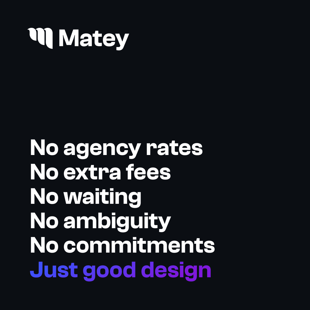 Matey started as a side project rooted in a simple observation: many of my freelance clients needed design help but couldn’t afford traditional agency rates or large project retainers. They wanted great design, delivered quickly, without the overhead or unpredictability. I realized there was a gap — talented founders and growing teams needed a flexible, affordable way to get quality design without breaking their budgets.